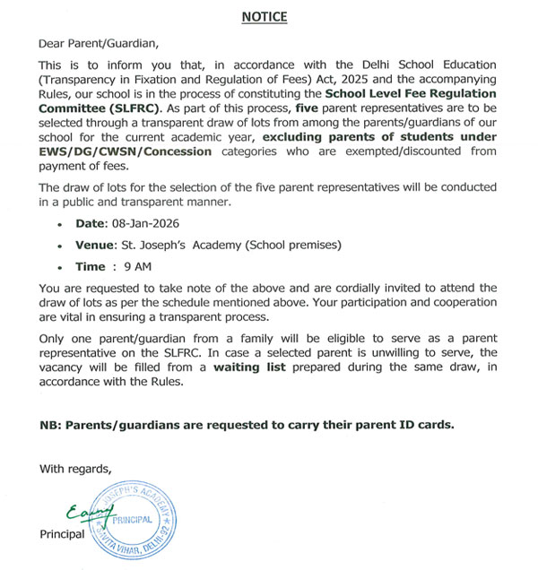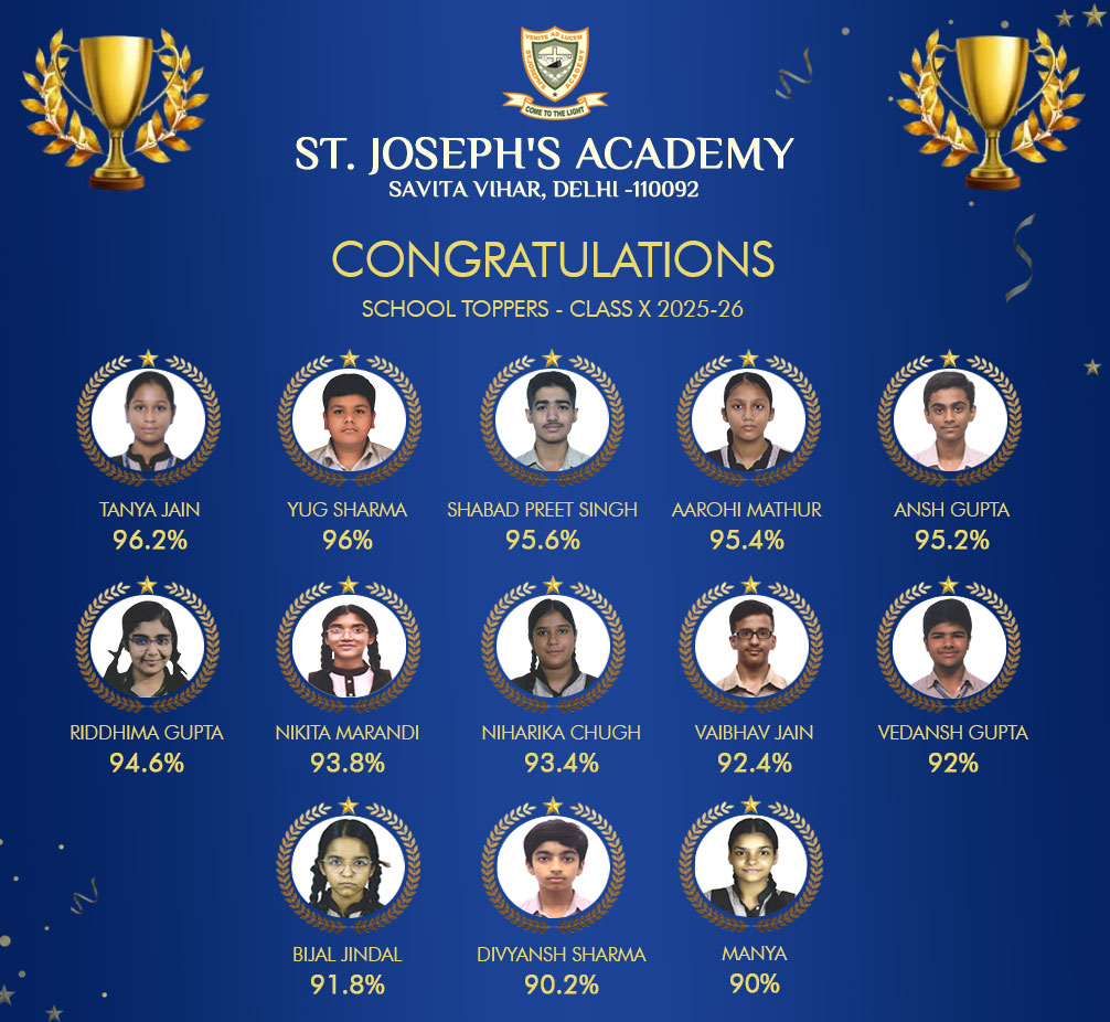 St. Joseph's Academy is a Christian minority institution run by the capuchin fathers Region, St.Francis of Assisi Province, India. The capuchin residing at Shanti Bhawan, Naveen Shahdara is responsible for its functioning. We believe that it is a part of our sacred duty to impart knowledge and mould the character of children entrusted to our care. With this objective, we aim at an integral education of students: intellectual, social, moral, physical and psychological. The intellectual education is sought to be given by way of a course of studies that is suited to the mental development of the students. The choice of the course of studies is governed by the consideration that it serves as a solid foundation for higher studies.